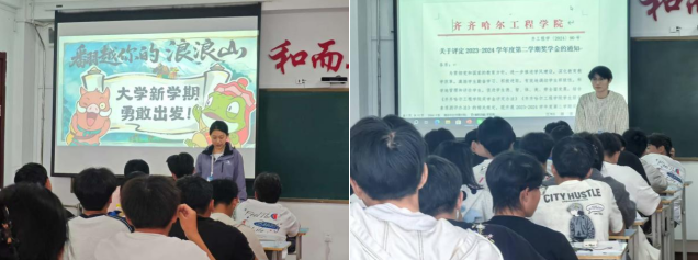 活动当日,学长们早早于教室内等待,着装整齐,精神抖擞,将活泼严谨的PPT呈现于新生眼前,他们列举了进入大学后新生们出现的各种问题并认真的进行了一一解答。学长们还讲述了齐齐哈尔工程学院的校风校纪,规章制度等新生们可能出现问题的地方。在整个活动中,车辆25级的新生充分展现出了他们身上的积极求知态度。