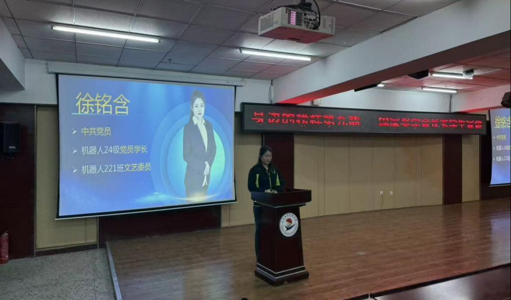 机器人221徐铭含首先围绕思想、学习、创新、实践四大板块展开宣讲,讲述了自己的入党历程、学业成绩、竞赛奖项与实习经历。作为全面发展的榜样,他的宣讲让学子明晰了成长路径,增强了创新与实践的信心,传递了不懈奋进的精神。
