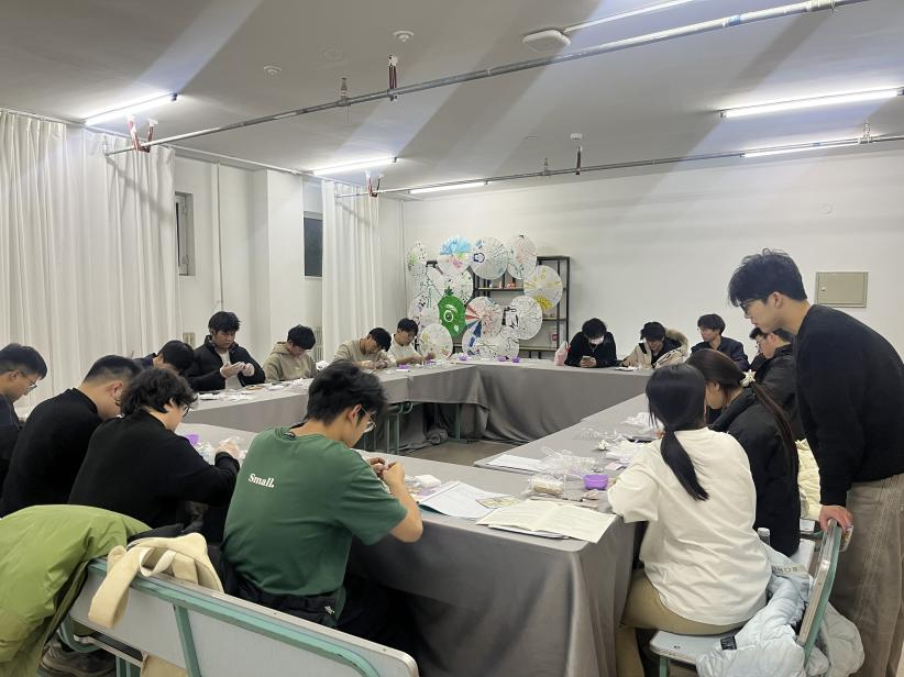 活动现场氛围热烈,同学们领取木质杯垫、填缝剂、马克笔、画笔等材料后,迅速投入创作。大家时而专注构思,时而相互交流技巧,将传统美学与现代创意融入杯垫设计中。创作过程中,指导教师全程提供细致指导,涉及高温工具的操作均由教师统一完成,确保活动安全有序开展。