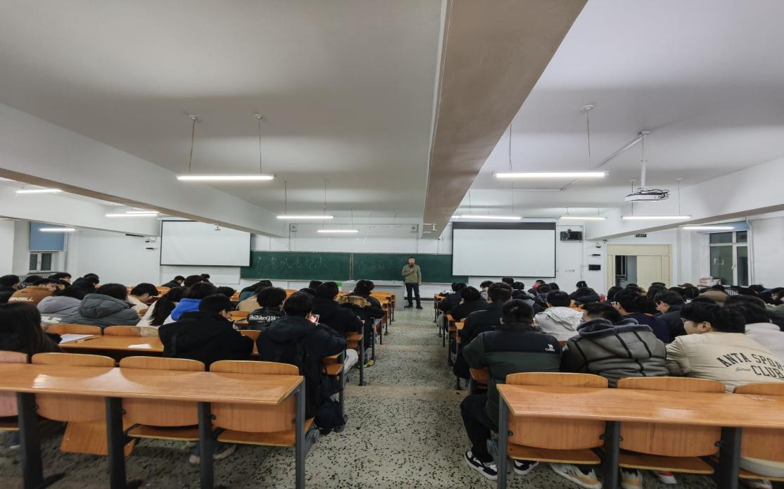 随后,机械专业教师郝岩利带来就业指导分享。他结合机械行业“工业之母”的定位与智能制造发展趋势,分析了当前就业市场的需求特点。郝岩利从专业匹配度出发,介绍了机械毕业生在机械制造、航空航天、机器人自动化等领域的就业方向,以及机械设计、工艺工程、设备管理等核心岗位要求。他建议同学们兼顾专业学习与实践能力提升,熟练掌握CAD等硬技能。针对部分同学的升学与就业选择困惑,他鼓励大家结合自身优势合理规划,无论是备战考研、国考还是直接就业,都需明确目标、稳步推进。