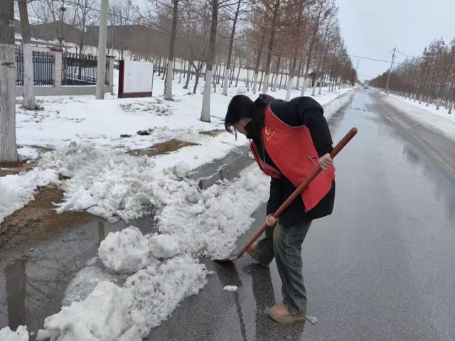 凛冽的寒风中,大家踊跃响应,带着铁锹、扫帚、推雪板等工具齐聚。分工明确,有的负责用推雪板清理主干道的厚积雪,有的拿着铁锹铲除路面的坚冰,有的则用扫帚将残余雪屑扫至马路两边,经过三个多小时的奋战,积雪基本清扫干净。