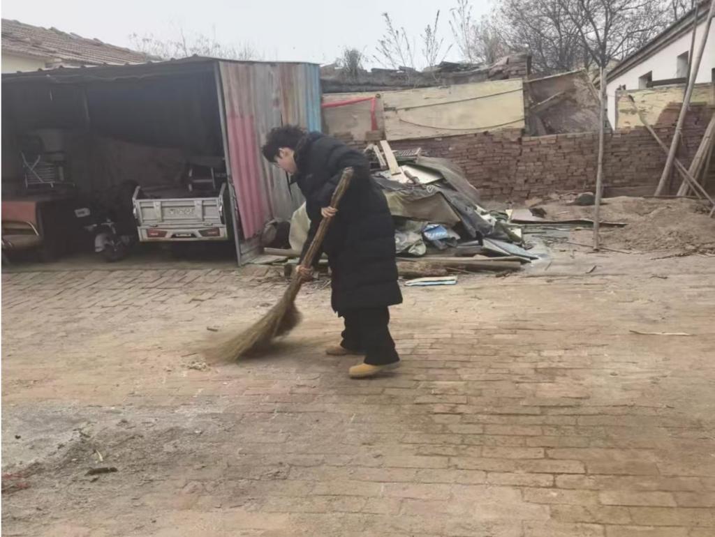 房庄子村委会开展志愿服务活动,组织多名志愿者分组上门,为社区内6户行动不便的老人清扫庭院、整理杂物,用实际行动传递温暖与关怀,活动期间,房庆晔迅速投入到劳动中。手持扫帚清扫庭院地面的落叶、灰尘与碎石,用铁锹铲除墙角的杂草、清理堆积的枯枝败叶,整理老人堆放的废旧物品,将有用的东西分类收纳,无用的杂物打包清运,拿起抹布擦拭庭院中的桌椅、门窗、花盆等,不放过任何一个卫生死角。赢得村委会的肯定和老人们的赞扬。
