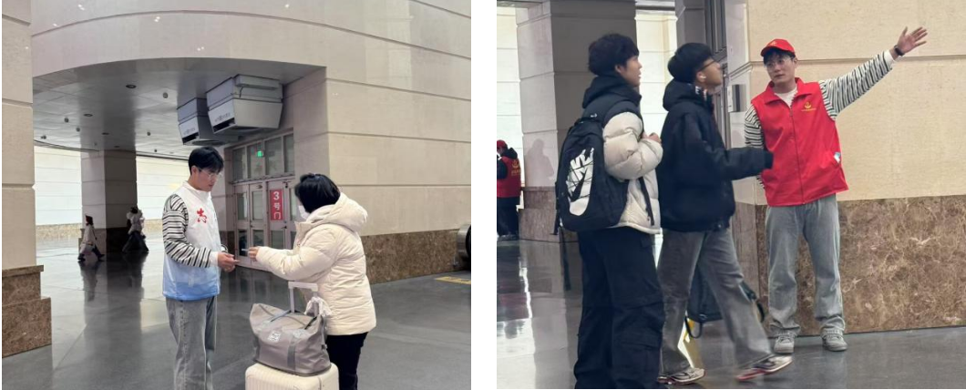服务期间,关键铭充分展现机械专业学子的严谨细致,不仅精准把控客流疏导节奏,还主动排查服务区域安全隐患,协助维护站内秩序。连续数小时的站立服务中,他始终保持饱满热情,用青春身影为这座交通枢纽注入温情,赢得旅客纷纷点赞与车站工作人员的认可。
