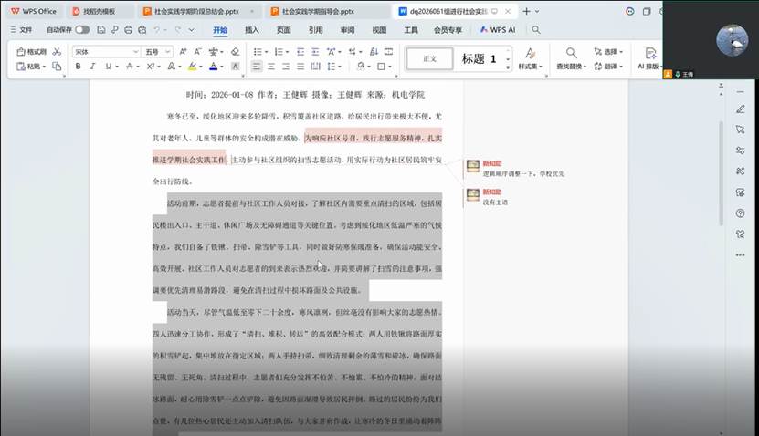 1月28日,生涯导师王倩通过线上会议形式召开了2025-2026学年度社会实践学期阶段总结会,所指导的学生全员参会。