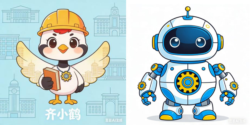 活动中,小组成员以齐齐哈尔市市鸟丹顶鹤为核心视觉原型,融合工科院校的机械、工程元素,打造兼具地域标识性与学科属性的吉祥物形象。丹顶鹤是齐齐哈尔的城市名片,代表扎龙湿地的生态底蕴,契合学校扎根地方、服务区域发展的办学定位;同时提取鹤的挺拔、灵动形态,结合齿轮、工程尺、安全帽等工科符号,弱化纯动物的柔美,强化工科生严谨、创新、向上的精神特质,整体造型圆润亲和,适配校园文创、活动视觉、新媒体传播等多场景。学校吉祥物紧扣学院的工科属性,突出创新的专业特色,让吉祥物成为学院工程教育的视觉符号。融入齐齐哈尔“鹤城”的城市名片,传递积极向上、勇于探索的校园精神。结合学院“中而至庸,和而不同”的校训,塑造兼具科技感与人文温度的形象。专业吉祥物设计以机器人专业核心特质为根本,锚定齐齐哈尔工程学院的办学定位,同时融入学校地域标识与校训精神,拒绝脱离专业的泛化设计,也摒弃无文化根基的纯机械形象。设计核心围绕“智能、工程、创新、实干”四大关键词,将机器人专业的技术内核、学科特色与校园文化、地域符号有机结的合,打造兼具专业辨识度、视觉传播性与文化归属感的IP形象,既体现机器人专业的前沿性与科技感,又贴合学校扎根鹤城、崇实砺能的办学底色。