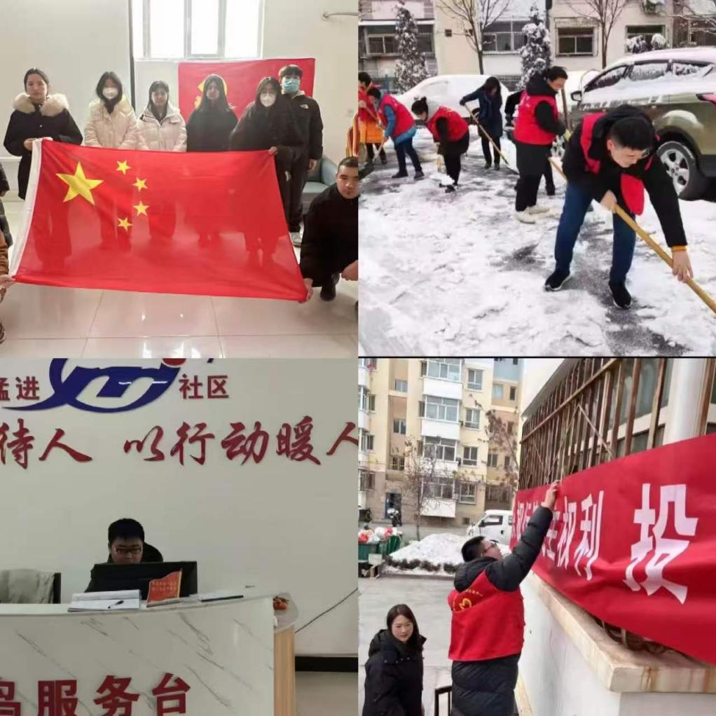 王奥杰和多位志愿者手持国旗合影,展现出心系家国、乐于奉献的精神面貌,为后续志愿服务凝聚了温暖力量。孙少瑜与志愿者们身穿红马甲,手持铁锹铲雪除冰,居民出行扫清障碍,用行动诠释志愿精神。杜凯斌在社区服务台值守,专注投入工作,以耐心细致的态度为居民办理事务,践行“以行动暖人”的服务理念。张军强与志愿者们协作悬挂宣传横幅,以清晰醒目的标语传递信息,营造积极的社区氛围。