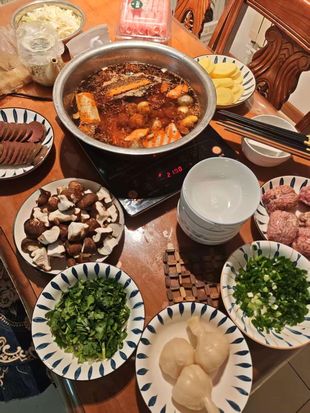 在冬天必不可少要吃一顿热乎乎的火锅了,所以组员一大早起来就去超市购买食材外面的雪花淅淅沥沥,太阳也刚刚出来,刺眼的阳光照射在雪面上,雪花晶莹剔透的闪着五颜六色的光芒。心里一想,真是一个吃火锅的好日子,然后去了超市,仔细去挑选自己和父母爱吃的食材。然后高高兴兴的回到了家里,然后开始准备着手处理食材。