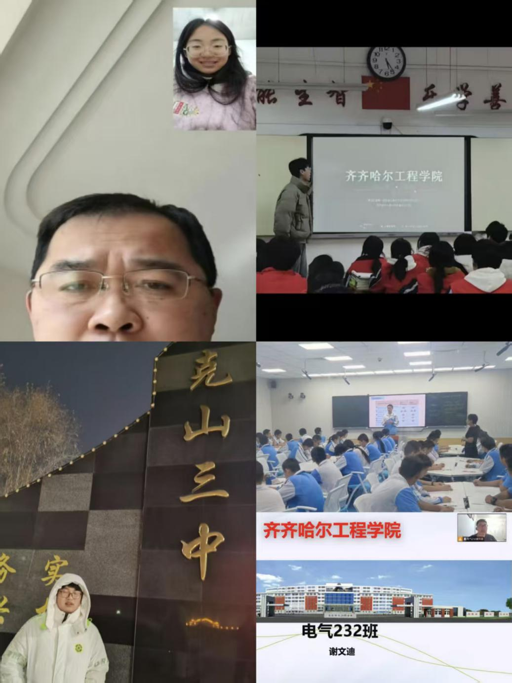 响应学校社会实践学期寻新“荐”面礼的活动倡议,2月9日,机电学院dq2026053小组谢文迪、曲帅铭、夏建文、李明凯四位同学,采用线上线下两种方式回访高中母校,为正面临升学抉择的高三学子带来了一场兼具专业深度与情感温度的校园宣讲,全方位、多角度展现齐齐哈尔工程学院的办学理念与育人成效。