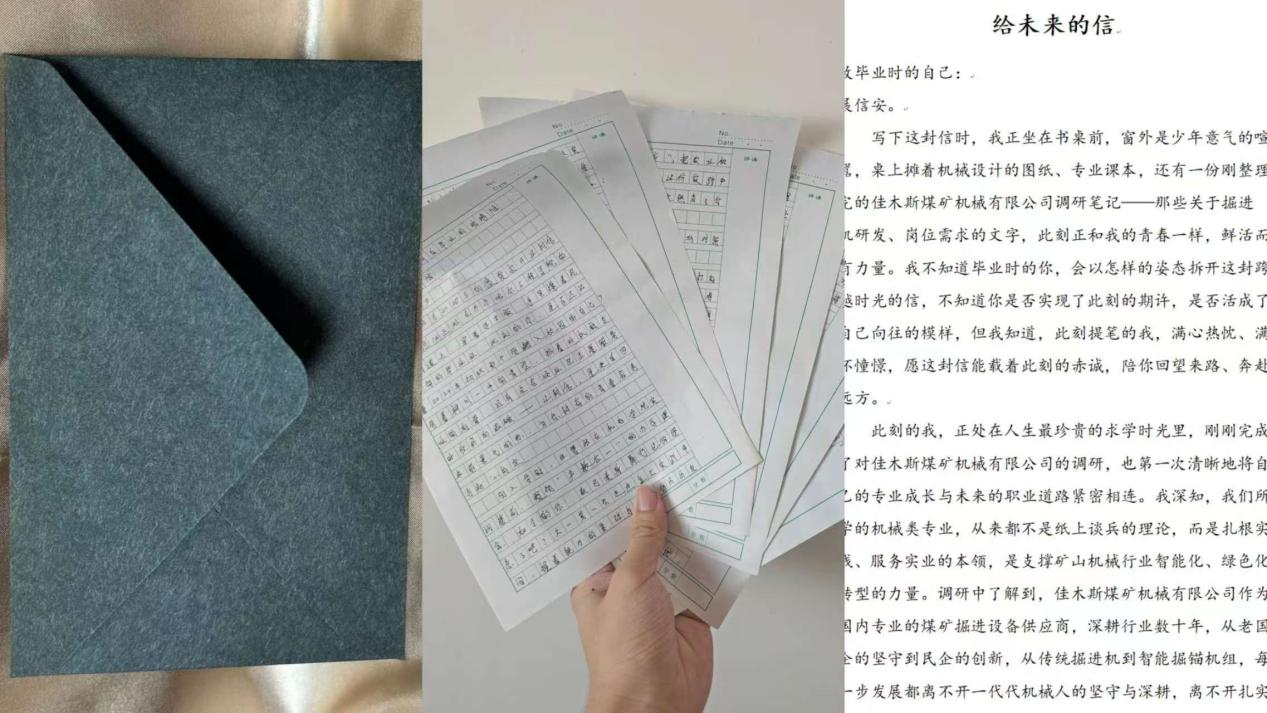 完成书写后,小组将信件密封标注开启时间,交由组织方保管。同学们坦言,此次活动让大家多了份脚踏实地的责任感,进一步明晰了学业目标。未来,他们将以这封信为动力,践行校训精神,深耕专业知识、坚持志愿服务,脚踏实地逐梦前行,努力成长为有担当的机械行业从业者。