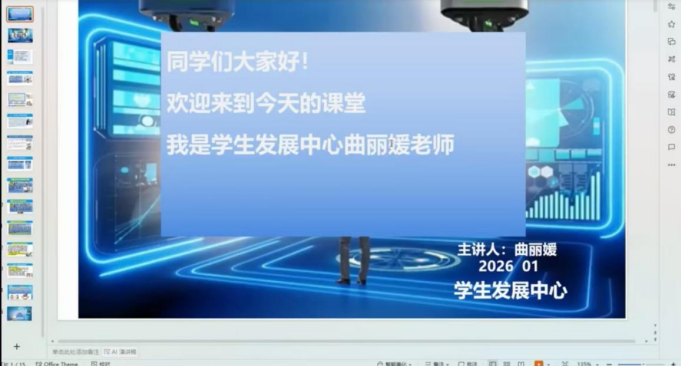 1月11日,为落实五育并举育人理念,强化学生综合素养,Cl2026038组进行了以德育教育(心理课程)与安全教育为核心的学习。学生发展中心曲丽媛老师主讲心理课程,围绕大学生常见压力源展开深入探讨,引导学生学会解码压力、调节情绪,培养积极健康的心理状态,筑牢德育教育的心理根基。