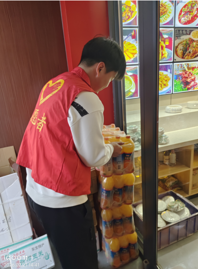 2月21日,jx2026014组佟佳兴同学积极参与社会志愿服务活动,本次志愿服务主要负责为商店向合作饭店搬运货物,以实际行动助力商户经营,展现青年学子的责任与担当。