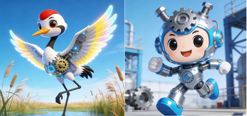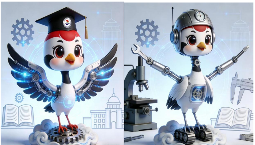 1月22日,jx2026013组的同学们结合AI工具开展吉祥物设计。于子涵同学设计的学校吉祥物名为齐械鹤,以丹顶鹤为原型,融合机械结构与齿轮元素,头戴学士帽。专业吉祥物名为铁锋匠,它立足齐齐哈尔重工业基因,传递了“动手实践、精工细作”的专业价值观。