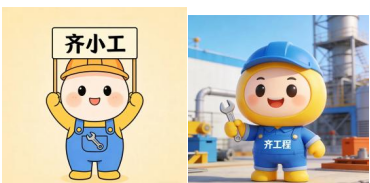 机械233班林繁鹤通过线上平台为齐齐哈尔工程学院设计了卡通形象 齐小工- 这是一个Q版手绘风格的卡通形象,头戴黄色安全帽,身穿黄衣蓝背带裤,口袋里的扳手是工程属性的标志性元素。