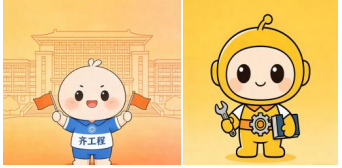 机械242班李佳洛为齐齐哈尔工程学院设计了卡通形象手持齿轮与书本的齐工程形象设计:这个形象以“学生”为核心定位。头顶的小嫩芽象征着新生与成长,白蓝配色的简约校服风格,传递出青春活力的气质。符号寓意:胸前的“齐工程”字样与校徽元素,明确了它的校园IP身份。