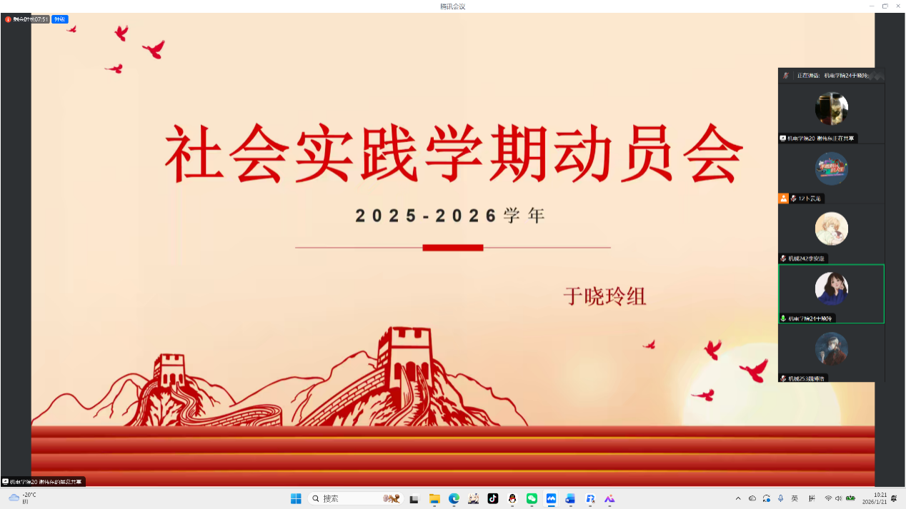 机械专业于晓玲为保障实践学期有序开展,于1月26日组织召开实践教学工作动员会