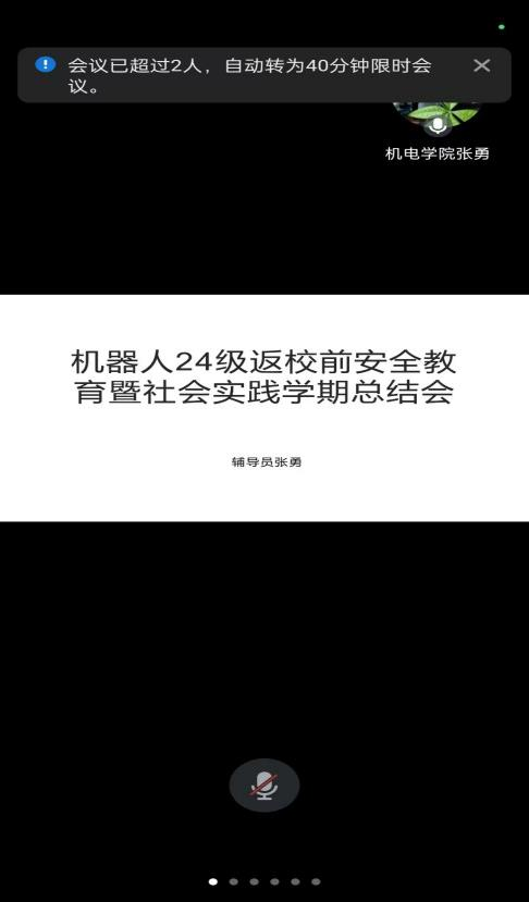 为切实筑牢学生返校安全防线,机器人24级于2月25日在线上召开返校前安全教育暨社会实践学期总结会,由辅导员张勇主持,24级全员参与。