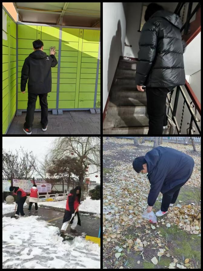 2月2日,cl2026016组成员苏博文、霍坤冉、袁晓晗、王若茜开展了一次公共区域垃圾清扫志愿活动。