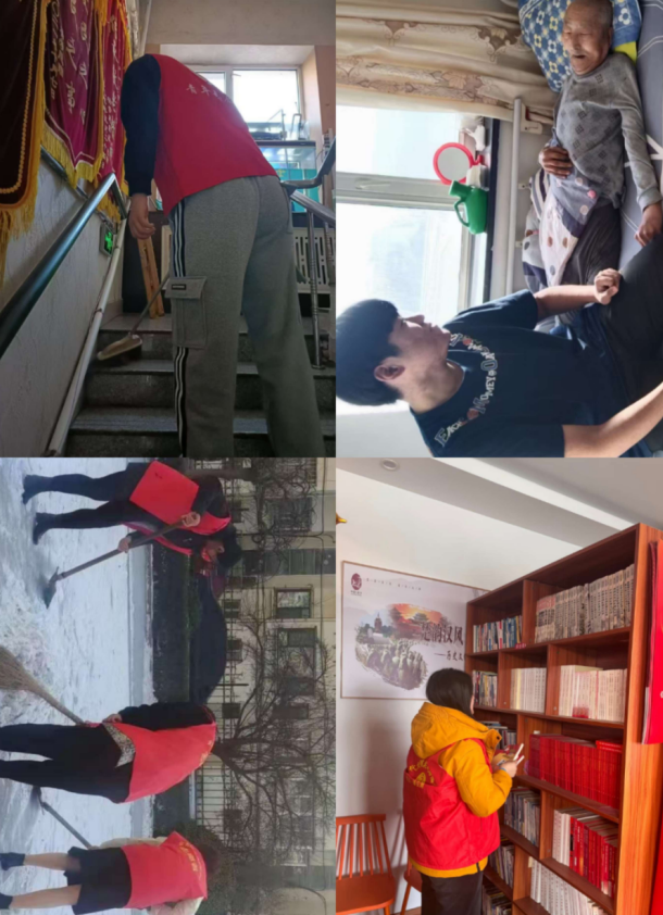 在积雪路段,志愿者们挥铲清雪、铲除冰层、铺设防滑垫,保障居民与车辆安全通行。在老旧社区,志愿者清理楼道杂物、擦拭公共设施、整治卫生死角,让居住环境焕然一新。在养老院,志愿者为老人送去慰问品,陪老人聊天、读报、表演节目,协助整理内务、普及冬季健康知识,用陪伴温暖老人心田。同时,志愿者还为独居老人、困难家庭上门服务,检查供暖、代购物资,解决实际困难。