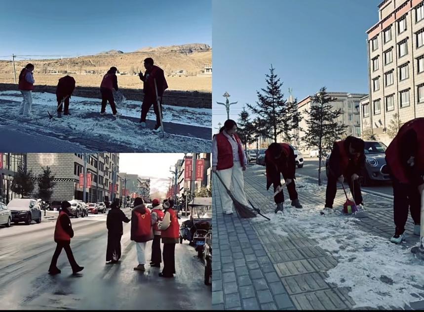 低温寒风中,志愿者们身着红马甲迅速投入清雪工作。他们默契配合,挥锹破冰、扫雪归堆,仅用3小时就清理完社区主干道与人行道的冰雪,让湿滑路面恢复通畅。过程中,志愿者们不惧严寒,手套冻僵、额头冒汗也不停歇,这份坚持感染了路过的市民,有人主动送来热水,甚至加入清雪队伍,让暖意与干劲在街头涌动。