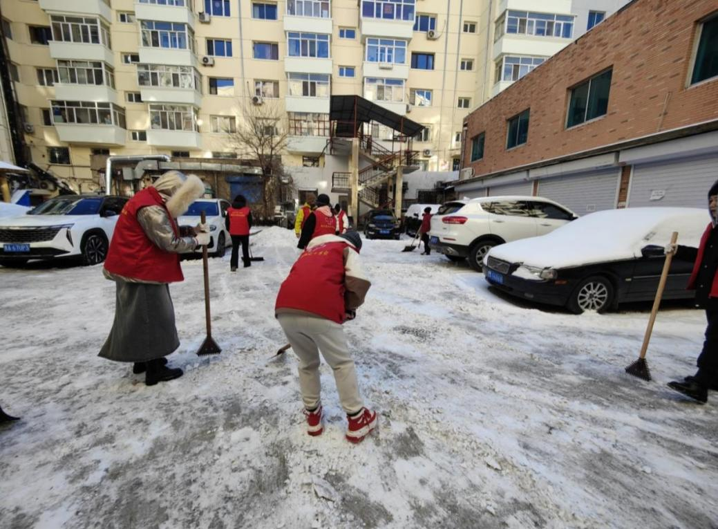 2月7日到2月9日,cl2026045组穆广建、赵旷为等5名同学们在友好花园西社区完成了扫雪志愿服务活动。