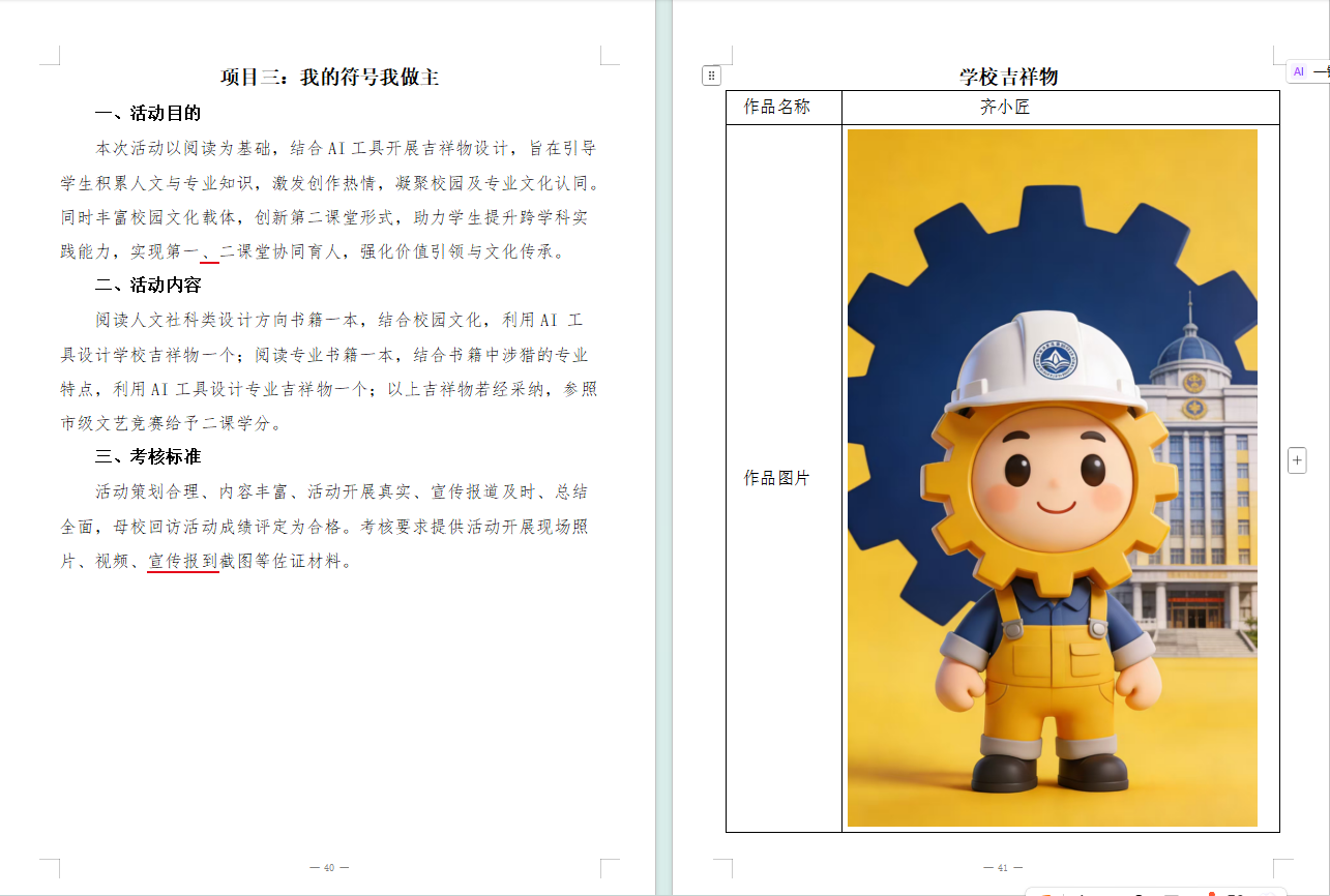 穆广健组长的合理分工安排之下,赵旷为同学搜集资料,刘翼珍同学生成吉祥物图片等,邱飞洋同学整合材料,郭嘉豪同学制作总结。各位同学都积极地参与进了劳动当中。设计吉祥物,核心是通过具象化、人格化的视觉形象,传递品牌、活动、组织的核心精神与文化内核,兼具情感连接、传播记忆、价值赋能等多重价值,是视觉符号与情感载体的结合体。