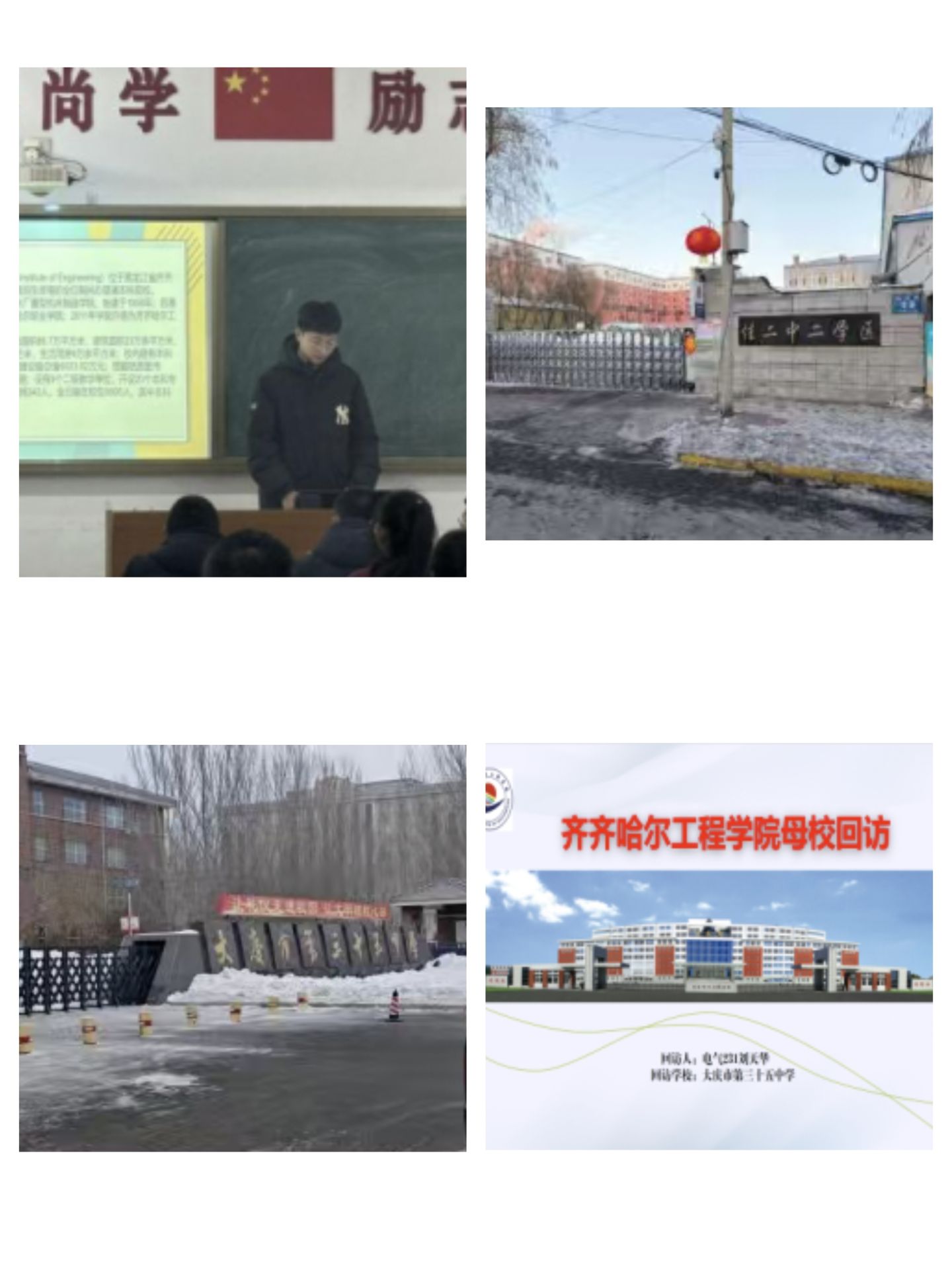为响应学校社会实践寻新“荐”面礼活动倡议,齐齐哈尔工程学院机电学院dq2026036小组刘天华、牟馨悦、邹宇航、齐家宝等四位同学,于2026年1月20日以线上线下结合方式回访高中母校,为高三学子开展招生宣讲,展现学校办学特色与育人成效。