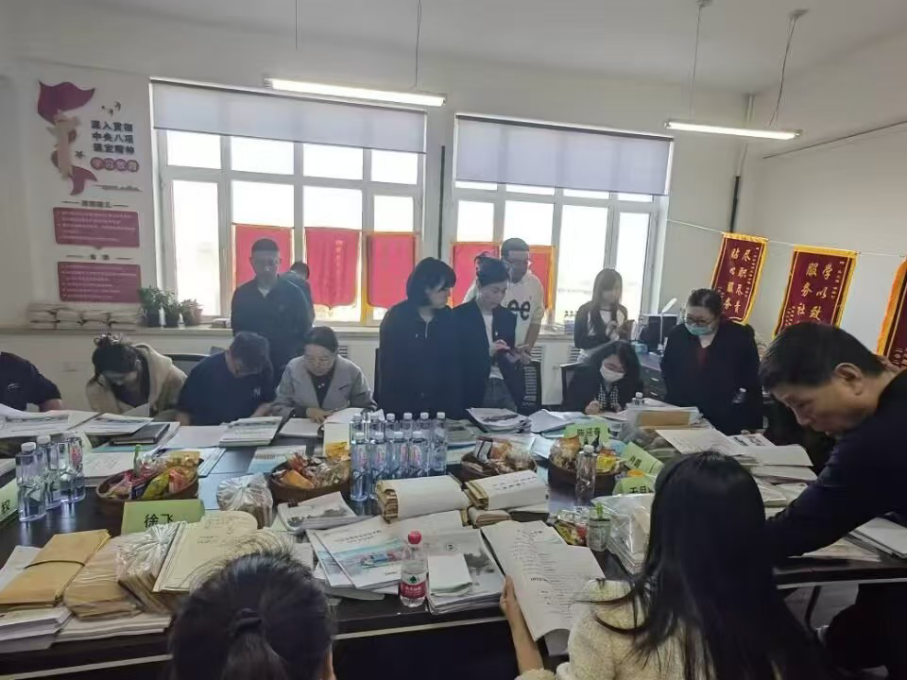 检查现场,各类社会实践成果分类规整、有序陈列,涵盖社会实践调研报告、志愿服务纪实、岗位实践总结、实践影像资料、荣誉证书等多种形式,全方位展现了学生们在社会实践学期中的所学、所思、所获。检查过程中,王丽萍与学工老师们逐一翻阅成果材料,重点核查实践活动的真实性、针对性和实效性,以及学生参与覆盖面与实践成果转化情况。