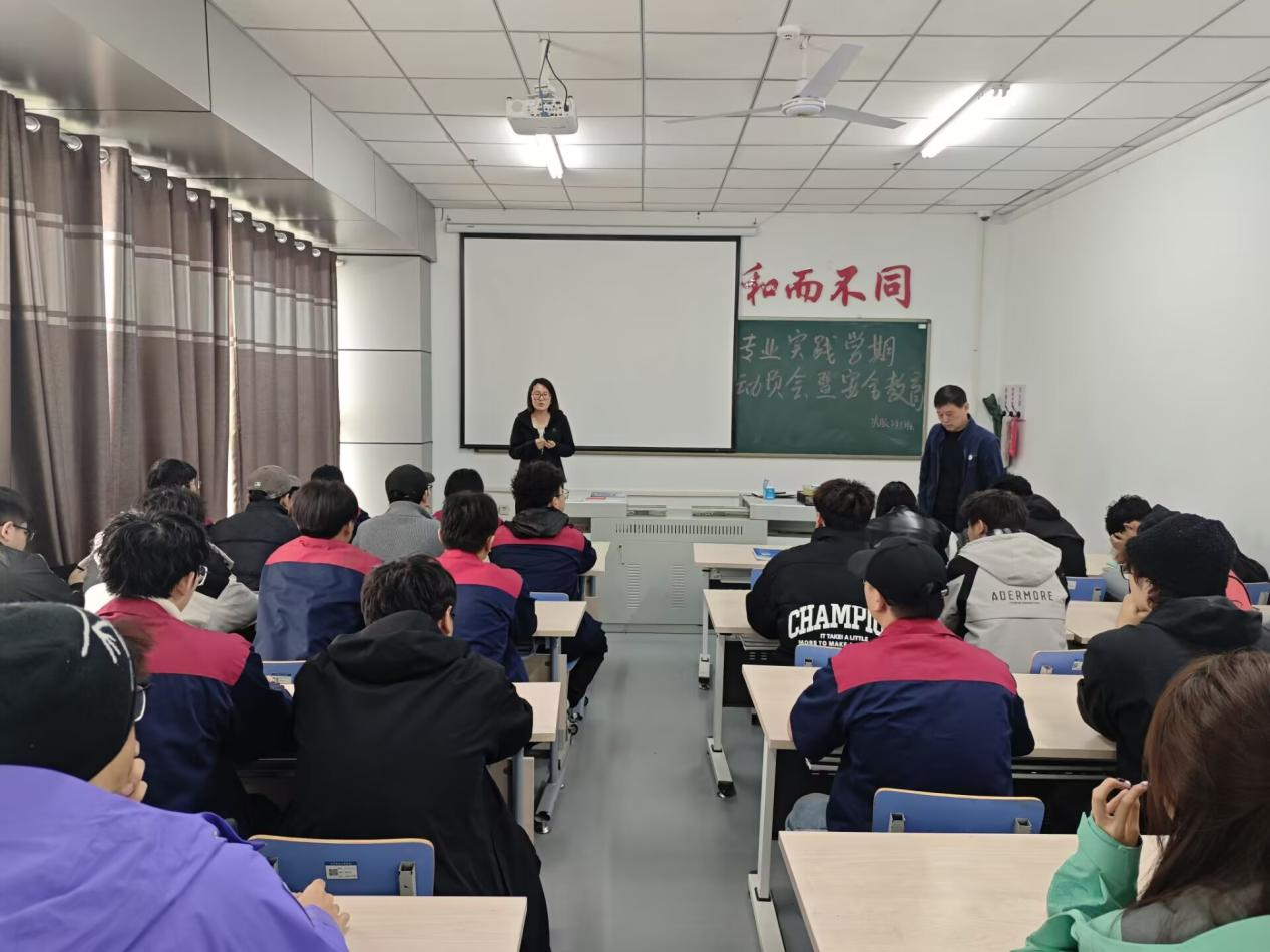 会上,邓敏老师作动员讲话,指出专业实践是连接理论与实操的关键环节,要求学生珍惜实践机会,将专业知识与岗位需求相结合,锤炼实操技能,严守实践纪律,确保实践学期高质量推进。董晓亮老师围绕人身、财产、岗位操作开展安全教育,提醒学生提高警惕,杜绝安全事故,明确实践期间安全报备与应急联络机制。