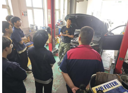 在修配厂车间里,陈建松老师指着正在拆解的发动机,给同学们讲 “工匠精神”。他说,车辆维修不只是技术活,更要精益求精。比如技师精准拧螺栓、仔细查电路故障,都是匠心的体现。他还提醒大家,现在汽车向新能源、智能化发展,既要学好技术,更要沉下心做细活,才能适应行业变化。