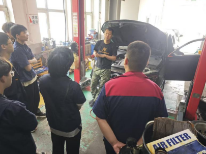 在修配厂车间里,陈建松老师指着正在拆解的发动机,给同学们讲 “工匠精神”。他说,车辆维修不只是技术活,更要精益求精。比如技师精准拧螺栓、仔细查电路故障,都是匠心的体现。他还提醒大家,现在汽车向新能源、智能化发展,既要学好技术,更要沉下心做细活,才能适应行业变化。