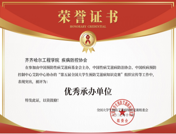 2021年3月大赛组委会“第五届全国大学生预防艾滋病知识竞赛”活动进行了总结表彰,授予齐齐哈尔工程学院疾病防控协会优秀承办单位荣誉称号,同时指导教师董晓亮老师荣获优秀指导老师称号。