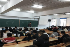 为营造一种积极向上,健康文明的校园文化氛围,提高学生的综合素质,促进我校的精神文明建设,3月12日,辅导员张勇老师在图书馆401开展了大学生文明教育主题班会,机械专业19级全体同学参加。