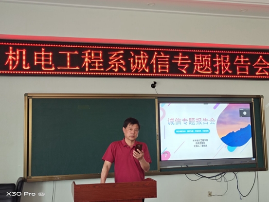 为了培养我校学生诚信为本、操守为重,守信光荣、失信可耻的诚信观念。机电工程系于5月17日下午召开了“大学生诚信教育”主题会议,此次会议分别在线上腾讯平台与线下图书馆501召开,辅导员董晓亮老师担任主持,机电工程系20级全体学生参会。