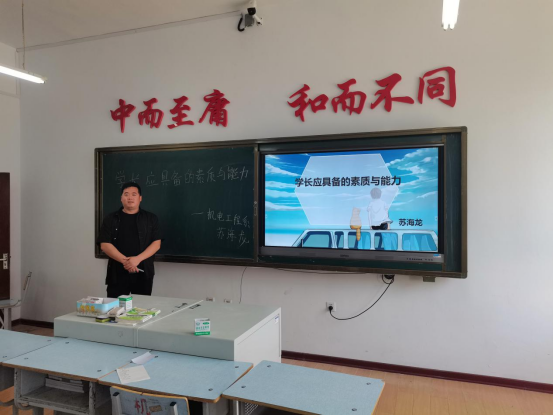 第四次课程是辅导员苏海龙老师讲解的“学院三五能力、表格统计、材料整理”,以《学长应具备的素质与能力》为主题的培训。其中学院三五能力是课上重点,三五能力分别是五种素质能力、五种通用能力、五种做事能力。学院的梦蝶钢塑就象征着学院三五能力,正如梦蝶钢塑本体与湖中倒影构成亦真亦幻的蝴蝶,象征莘莘学子,在催人奋进的校园文化中好梦成真、化蛹为蝶。经过此次学习,同学们了解到了学长应具备的素质与能力,也知道了一些学长工作的要求和内容。