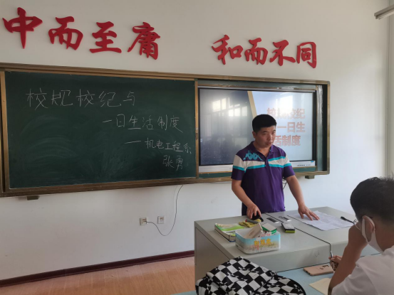 第六次课程由张勇老师为大家进行讲解校规校纪与一日生活制度,校规校纪方面,张老师主要分为六个部分讲解,分别是1请销假制度、2教学区管理、3寝室管理、4在外人员管理、5德育学分管理、6违纪处分制度。一日生活制度分为起床、早自习、(早操)就餐、上课、打卡、就寝六个步骤讲解。经过张勇老师的耐心讲解,学长都懂得了如何教给新生校规校纪和一日生活制度,这些校园制度不是一朝一夕就可以学会的,学长们要对学弟学妹反复强调,让新生们可以严格遵守学习校规校纪和生活制度。