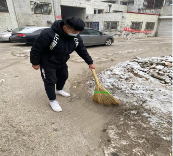 首先,我们找到了社区的工作人员,在了解了工作人员的任务后,我们随其拿到了工具开始对地面进行清扫工作。为了提高效率,我们对工作进行了调整,我们分成四组,每个人都负责一块区域,分工合作。在这长达两个小时的工作中,寒冷天气给我们造成了极大困扰,但我们每个人都没有放弃,咬着牙,抵御着寒冷,不停的干,终于皇天不负有心人,我们圆满完成任务,看着被我们打扫的干干净净的道路,一股自豪感尤然心生。我们的努力没有白费,寒冷也没有白受,我们遇到困难,没有怕,没有退缩,这结果就是对我们最好的回应。