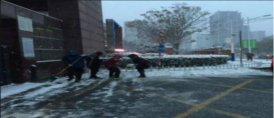 小组志愿者们帮环卫工人进行修整绿化带、垃圾分类等工作,正所谓进化赶不上变化。在进行垃圾分类期间,2021年的第一场大雪悄然而至,整个大地变得分外妖娆。给大家带来了惊喜,也为出行带来了诸多不便和安全隐患。为了让行人们能安全出行,在清理垃圾之后,GY-396小组清扫道路积雪,确保行人们的安全。在完成一切之后,中央大街的环卫负责人再仔细的检查路面、绿化带和垃圾分类桶后对我们的工作表示了肯定,这让我们非常高兴。