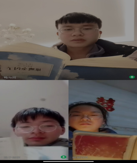 为了让第四学期的读书交流顺利进行,GY-109小组梅与同、邬德军、南晓敏三人通过QQ视频进行讨论、分析并总结,将各自的读书感悟进行分享交流,从而使每个人都能对所读的书产生更深层次的理解。