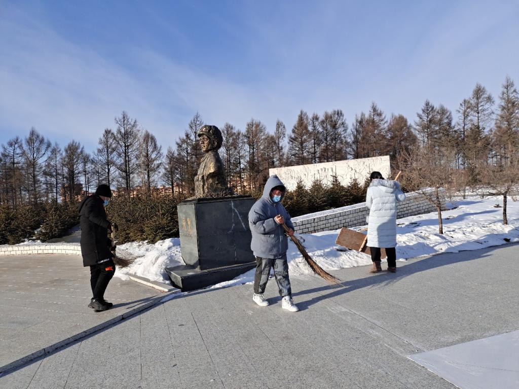 活动开始,SW小组成员首先进行了默哀,组长杨庆宇表示如果没有革命烈士,我们就没有现在的幸福生活,而作为当代大学生的我们更应该懂得感恩。组员们纷纷表示会好好珍惜现在的幸福生活。随后SW小队开始主动将烈士纪念碑及附近积雪清扫干净,用实际行动表现了服务社会的觉悟。