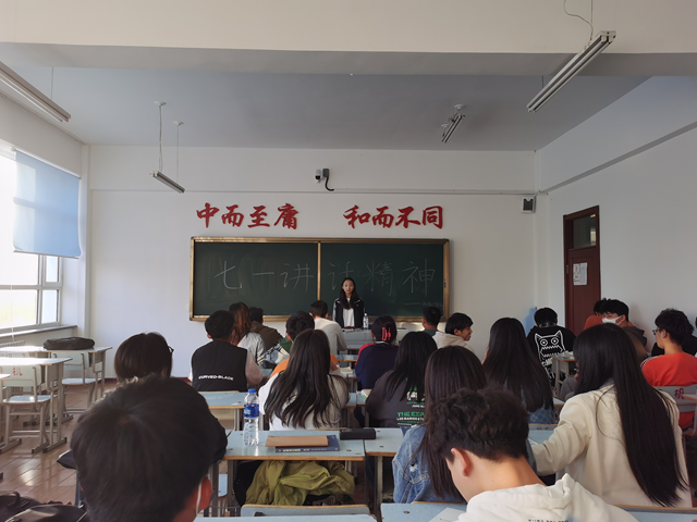本次活动围绕学习“七一讲话”为主题,向同学们分享习近平总书记“七一”讲话中的重要内容。第一部分讲建党以来三件大事:100年来,中国共产党带领人民在中国这片古老的土地,书写了人类发展史上惊天地、泣鬼神的壮丽史诗,集中体现为完成和推进了三件大事;第二部分讲三大成就:经过100年的奋斗、创造、积累,党和人民必须倍加珍惜、长期坚持,不断发展的成就,开辟了中国特色社会主义道路, 形成了中国特色社会主义理论体系,确立了中国特色社色社会主义理论体系。大家安静听讲话内容,体会党员精神。
