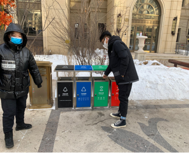 为了更好的进行垃圾分类,让社区的环境更美,2021年1月17日中午在第四学期GY-393组组长石睿同学的带领下与组员姜杉、刘田田、闫康佳露于哈尔滨市双城区伯爵公馆小区进行垃圾分类实践活动。