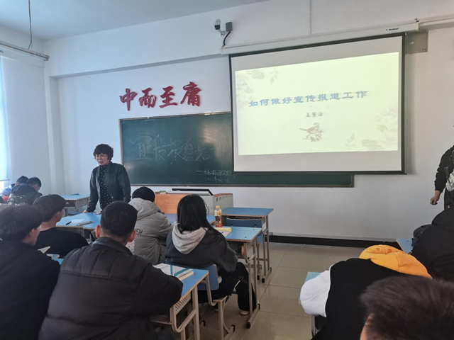孟老师首先为大家讲解了提升写作能力,做好宣传报道工作的目的和意义,孟老师说:一个人的文字能力是伴随一生的财富,以此来激励大家以热情饱满的态度投入到宣传报道工作中来。随后孟老师围绕“如何做好宣传报道工作”为同学们进行了“写什么、怎么写”的讲解,并对撰写宣传报道的基本格式和具体要求做了详细阐述,说明了宣传报道的重要性。张敬健部长结合自身经历,为大家生动的讲述了他从任班级宣传委员以来的成长历程,随后又以如何提升自己,掌握优秀的文笔能力为主题,为大家讲解了提升写作能力的多种方式,教给了学弟学妹们如何在以后的大学生涯中勤学习、勤思考、勤观察、勤动笔,如何写出有时效性、实用性、针对性的稿件。