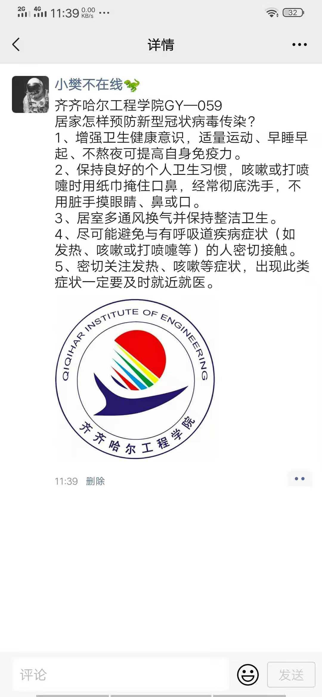 2021年1月23日,GY-059组组长杨玉宝,组员樊庆龙,翟晗爽,马秋杰由于近期疫情严重,小组所在地齐齐哈尔市各区实施封闭管理。于是线上开展第四学期疫情知识讲解。