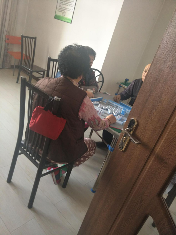 进屋之后,映入我们眼帘的是爷爷奶奶们正在一起打着麻将,其中一位爷爷发现我们来了,急忙对着旁边的奶奶说,老赵,你看那帮孩子来了,这位老奶奶回头看到了我们,脸上露出了笑容,对着我们说,来孩子帮奶奶玩两把,我运气不好,你来玩两把,我心想我也不会啊!不过,来都来了,就陪爷爷奶奶们玩两把吧,我做了下来,这位奶奶又搬了几个凳子给我的组员们让他们坐下,然后坐在了我的旁边看我和其他老人打麻将,场面异常温馨!打牌的时候,由于我不会玩,旁边的奶奶都看不下去了,直接指挥我!旁边的老爷爷哈哈说到,你别教坏了人家年轻人,这可算是赌博了!奶奶对着我们说,这几个孩子一看就是好孩子,咋还能去赌博呢!我挠挠头笑道,确实,我还不会玩这个呢!随后就是奶奶和他们玩了,边玩边和我们说着话,玩着玩着,老奶奶突然说道,不玩了,今天一直输,你等明天我肯定赢你们,一屋子人哈哈大笑道!