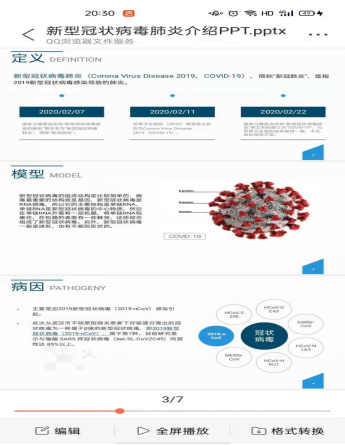 通过这次线上的疫情防护宣传活动,小组成员李炜楠为大家普及了新型冠状病毒的知识,我们将充分利用这些知识,熟练的在实践中应用,并尽力将这些知识传达给身边的人,让大家都对疫情有所了解和重视,让大家都懂得如何去应对这场疫情。