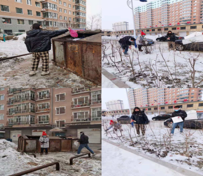 为了响应学院开展的第四学期活动,培养大学生的社会责任感,回报社会并为了以后更好的融入社会,GY-112小组尹燕超、张扬、王明馨、张冰扬等四位成员于1月19日在尚志市馨园二区开展了清扫社区的志愿公益活动,希望用我们的微薄之力给小区居民营造一个良好的居住环境。