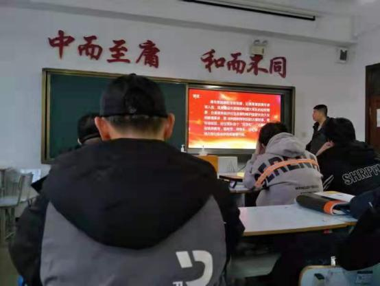 会上张勇老师主要从征兵入伍条件要求,国防的意义,当兵的好处,应征入伍的基本流程,退役士兵的优惠政策这五个方面向同学们进行讲解。为同学们宣传了参军的益处,参军报国可以获得一次弥足珍贵的学习和锻炼机会。在讲解过程中为同学们播放征兵宣传片,深深鼓舞了同学们的参军报国热情,军强则国强,国强则民安,张勇老师鼓励同学们积极参军,让同学们锻炼自己。