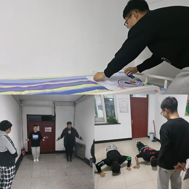 第一个活动为“内务整理大赛”。参赛选手进行内务PK,考验的是细心,磨炼的是毅力。保持内务整洁是我们每个人义不容辞的责任,我们要以此为荣,想“小美好”而看齐。活动二是“跳动青春”跳绳大赛,参赛选手两两组队进行一分钟跳绳PK,一对一裁判为其计数。本次比赛象征着我们的活力与朝气,每一次的跳跃都能展现出青春最美的样子,苦过,累过,我们就会笑过,这就是跳绳的魅力。第三部分为“俯卧撑大赛”,赛前每位同学都进行了准备活动,以发挥自己真正的实力。在比赛过程中,一对一裁判为其计数,比赛同学咬牙坚持,完成了一分钟俯卧撑比赛,现场氛围高涨。
