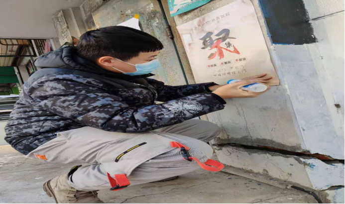 在活动中,孟嘉琪同学在哈尔滨市松北区对青镇对青村帮助全民核酸检测人员进行信息采集工作并检查来做核酸人员的“两码”(龙江健康码、通信行程卡)是否为绿码。崔景涛同学在哈尔滨市南岗区泰海花园小区向小区居民宣传疫情防控的相关知识并张贴关于疫情防控的宣传画。