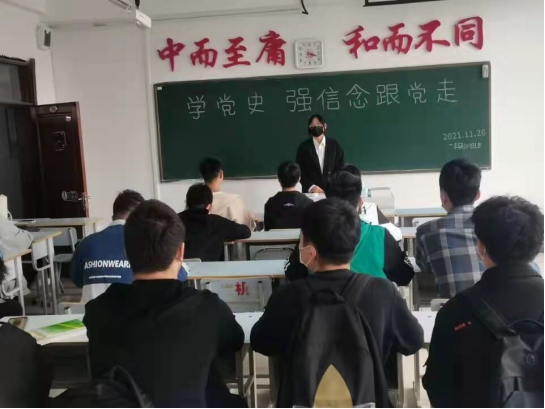 为引导本班同学发扬党的优良传统和作风,激发同学们的爱国之情,让同学们更加认真的学习党史,树立牢固的跟党走的信念,车辆203班团支部11月26日在图书馆414组织召开了“学党史、强信念、跟党走”主题团会,车辆203班全体成员共同参加。